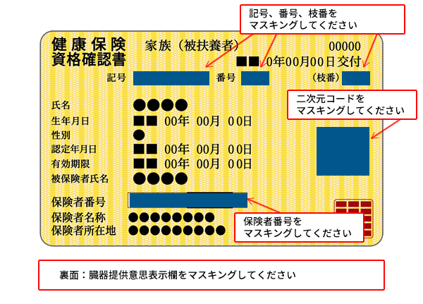 マスキングされていない場合、再度申請していただくことになりますので、あらかじめご了承ください。